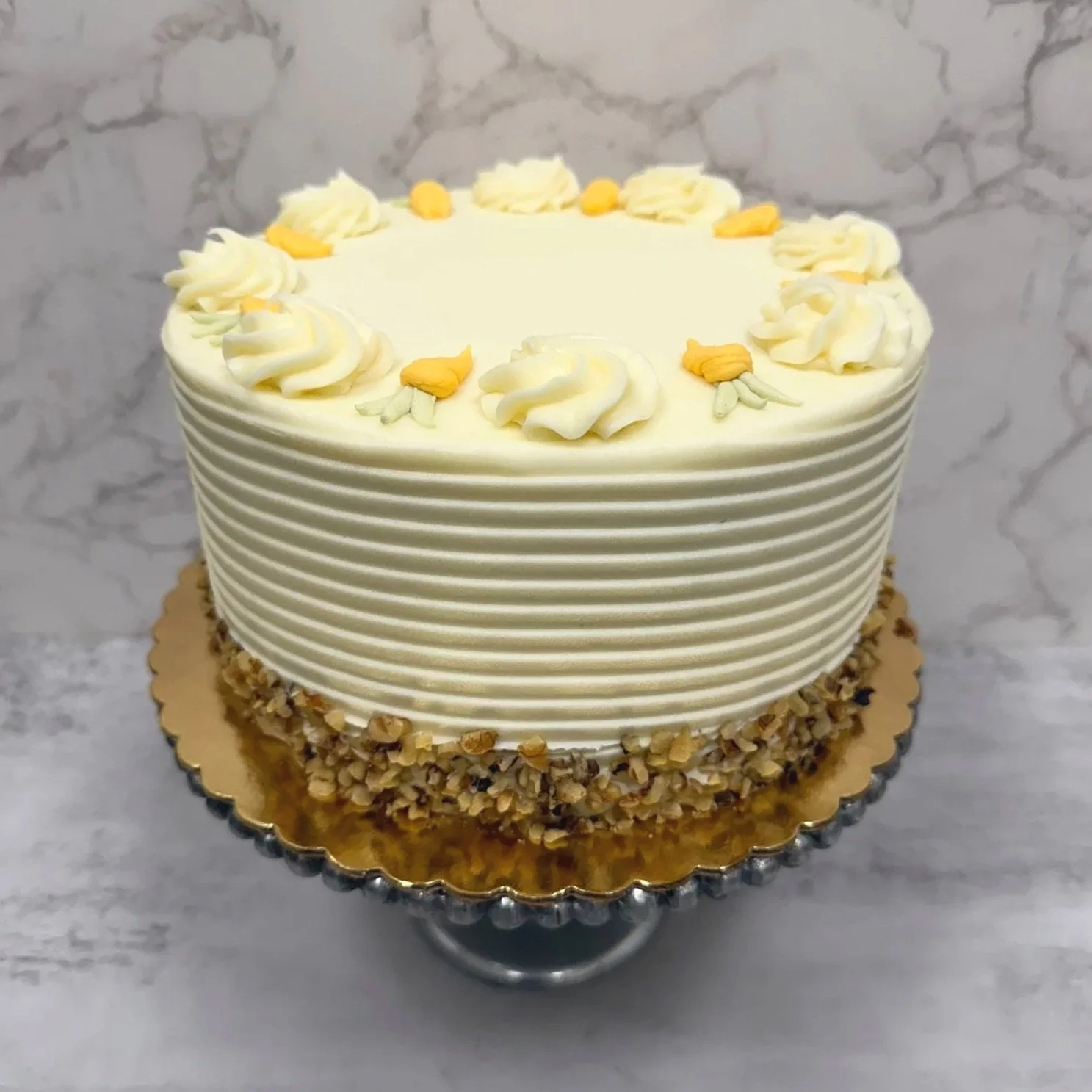 Cakes marked with (V) can be made dairy-free or vegan, using plant-based ingredients to ensure a tasty, guilt-free indulgence. Meanwhile, cakes marked with (NF) are naturally nut-free, but please keep in mind that we do have nuts in the facility. Always mention any allergies when placing an order. Explore our menu and find the perfect cake that suits your needs, without compromising on flavor or quality.
