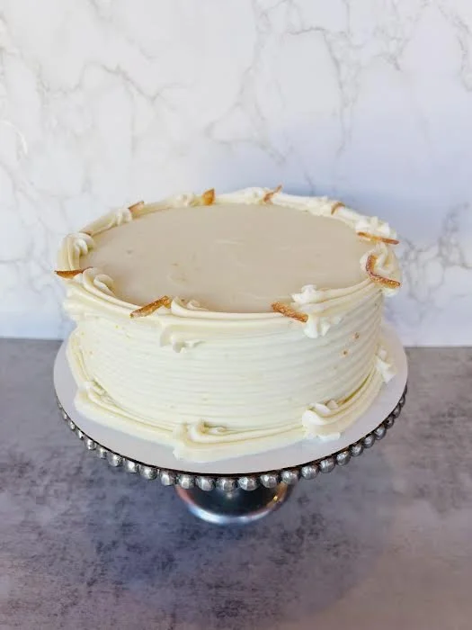 Orange Cake: Eggs, White Sugar, Canola Oil, Vanilla Extract, Baking Soda, Baking Powder, Salt, Xanthan Gum, Buttermilk, Flour Mix (Oat Flour, Rice Flour, Tapioca Starch), Orange Zest